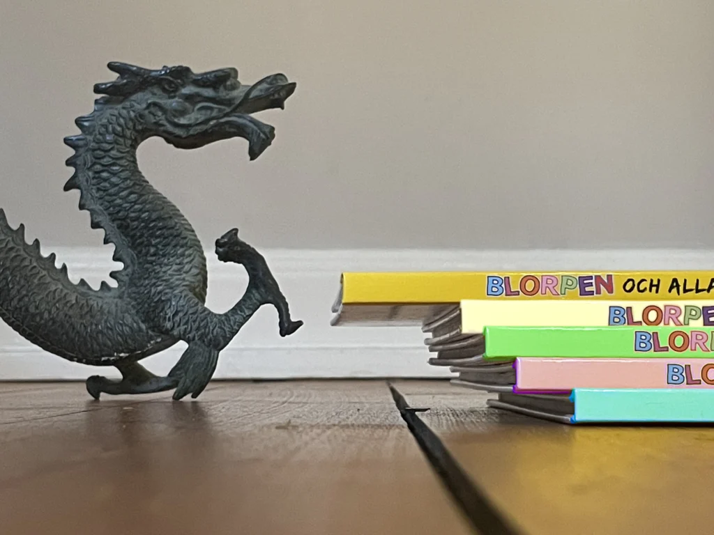 böcker med busiga monster och snälla drakar.
